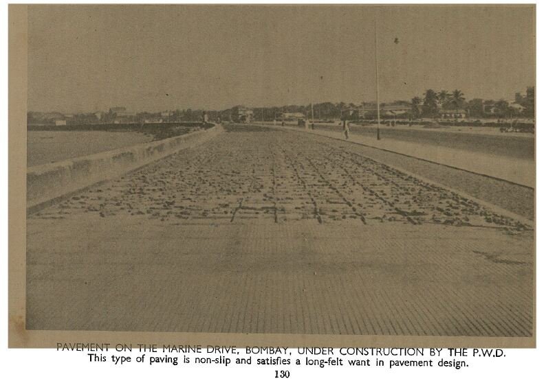 And that is what is wonderful about it, even in its original design, many aspects of which are unfortunately lost. It was finished in the 1930s, which was the peak of the campaign to introduce cement and reinforced concrete as a building material in the city. It was by extension also the peak of the popularity of Art Deco as a building style, and all of those things coincided. Hence, the paving material of Marine Drive was cement chequered tiles. They were those square tiles of two inches by two inches, prefabricated; a huge amount of cement tiles were consumed on the curved promenade.