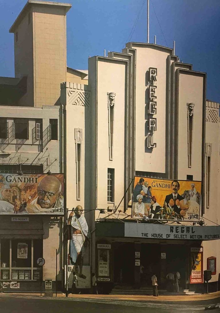 The Regal cinema's grand opening in 1933 inaugurated India's cinema architecture in the Art Deco style. Photo Courtesy: Sharada Dwivedi and Rahul Mehrotra, Bombay Deco: Page 50.