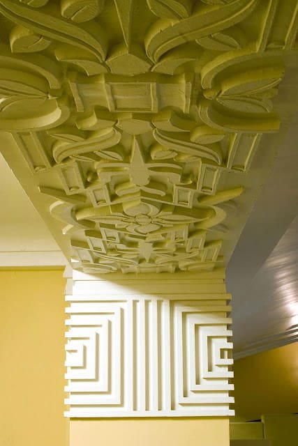 With an opening advertisement in the San Francisco Examiner captioned ‘The beacon’s Rays will guide you’, coupled with the enticing klieg light synonymous with the golden age of cinema in Hollywood, it boosted the theatre’s growing popularity. The sprawling theatre opened on November 4, 1931 with the capacity to seat 1,831 patrons and ran the musical comedy The Smiling Lieutenant, starring Maurice Chevalier. A bright, gleaming marquee above the entrance illuminated the sidewalk, serving as a landmark and distinguishing the theatre from other businesses for passersby. The neon signage with the name of the theatre hung high on the colossal stepped tower, and served as the centrepiece for an upcoming neighbourhood. Pflueger, still experimenting with streamlined modern style, designed the interiors with as much ornamentation as the external façade was devoid of. Patrons were greeted with ceilings adorned in plasterwork details, pilasters, capitals, friezes, and cartouches, signature elements of the Beaux-Arts style that Pflueger initially practised.