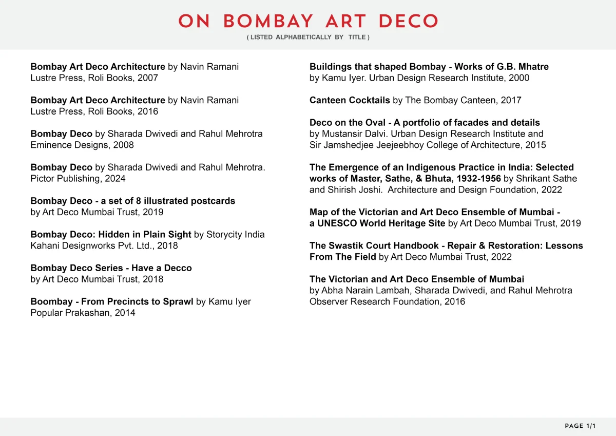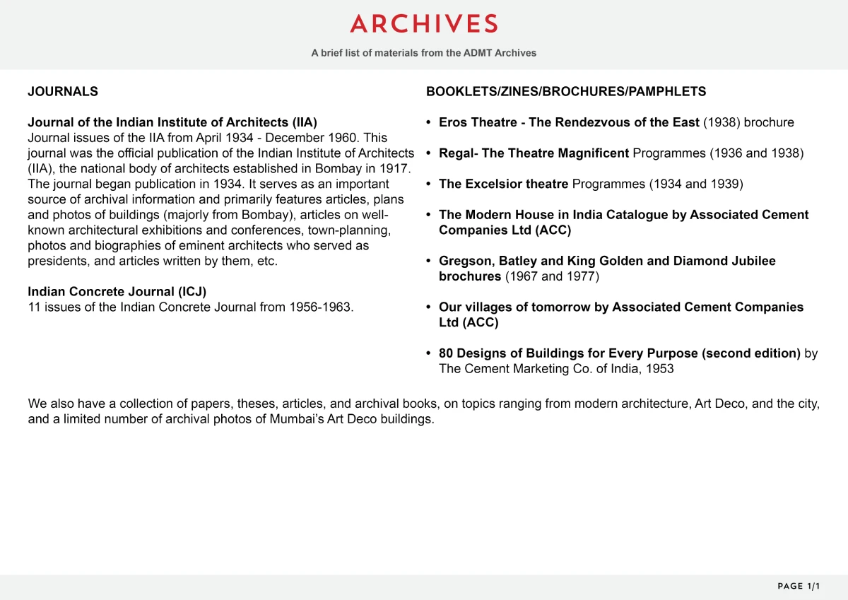 Art Deco Mumbai Trust is pleased to share some of the resources for public access starting 17th December 2018. To schedule an appointment, please fill out this form, and we will reach out to you with available slots.
