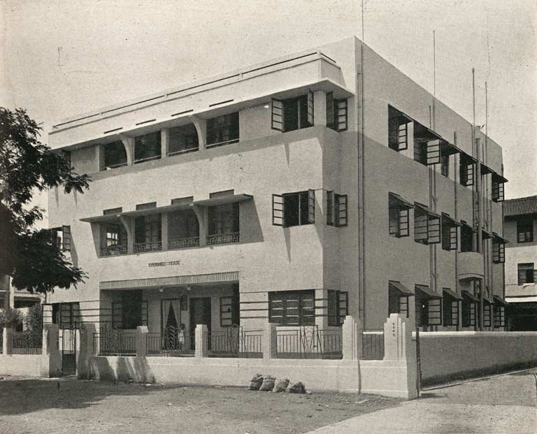 Khurshed House, Dadar Parsi Colony – an early apartment building designed by Mhatre, with the work credited to ‘Poonager & Mhatre Architects’. Source: Journal of the Indian Institute of Architects, July 1934