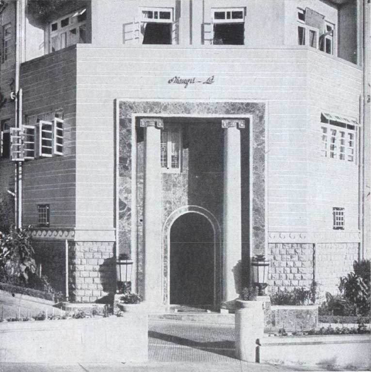 One of his prominent apartment buildings, Shangri-La at Cumbala Hill, is distinctive for its symmetrical massing, with streamlined balconies and curvilinear bay windows. The highlight of the building is its entrance, positioned on the facade’s central axis. The luxurious marble clad entrance is in tune with the overall design of this Deco marvel. The entrance is flanked by a pair of classical columns clad in Malad stone. G.B. Mhatre gave special attention to the treatment of entrances for the buildings he designed, ensuring they appeared inviting and appealing. He believed that these entrances leave a lasting impression on visitors and in the case of apartment buildings, encouraged prospective tenants to rent flats.[7]