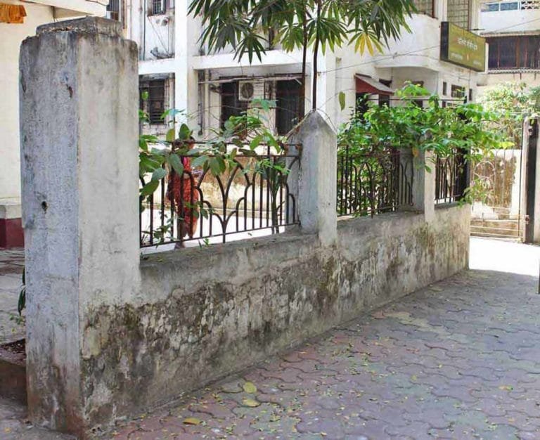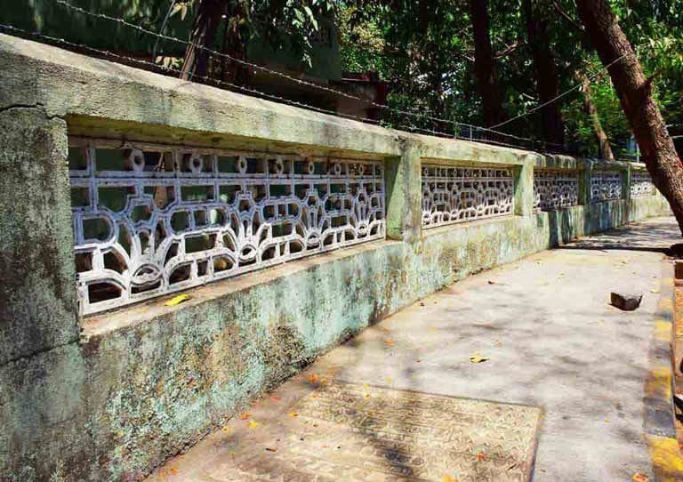 A compound wall demarcates a building’s property line. Typically, they are low-height walls with metal or concrete grilles, a quality that allows light and air to ground floor apartments.