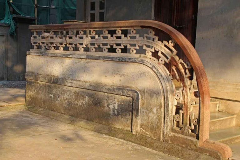 Ornate grillework with geometric or tropical inspired designs is often visible on balconies, windows, stairwells, gates & outdoor lamps, typically made of metal, concrete or wood.