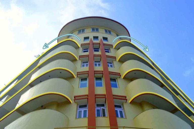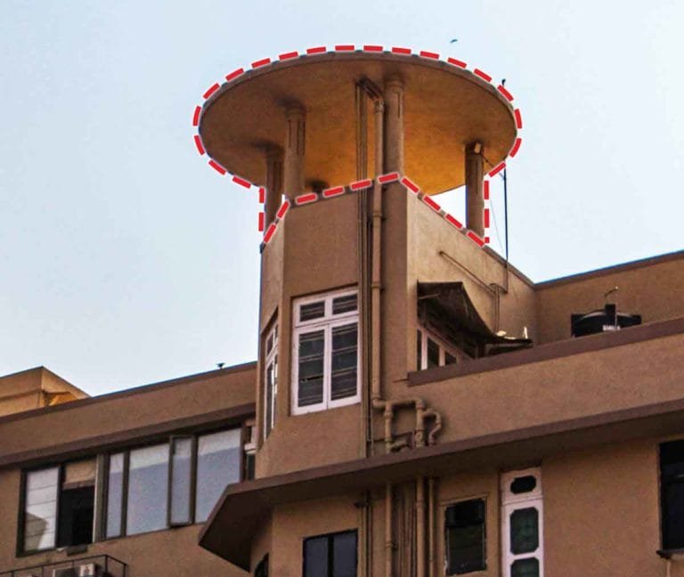 3.1.a) Nautical features: Luxurious ocean liners of the Deco era inspired the architectural design of buildings, complementing Bombay’s identity as a port city. Features such as porthole windows, ship deck railings and observatory towers are common nautical features that can be spotted.