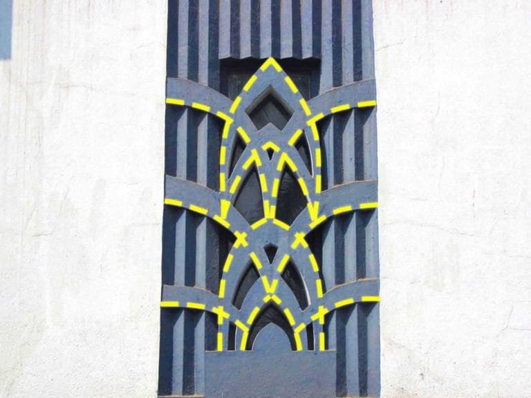 3.2.c) Zigzags: Zigzags are patterns of jagged lines and appear as decorative motifs on building facades, in the form of bas reliefs and deco banding.