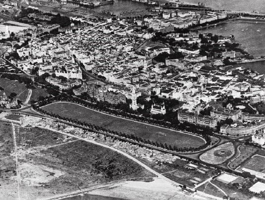 The Oval Maidan forms the fulcrum of a dramatic face-off between buildings built by an alien, imperial power and buildings built by Indians. (Photo Courtesy: Jehangir Sorabjee, Above Bombay: Page 27)