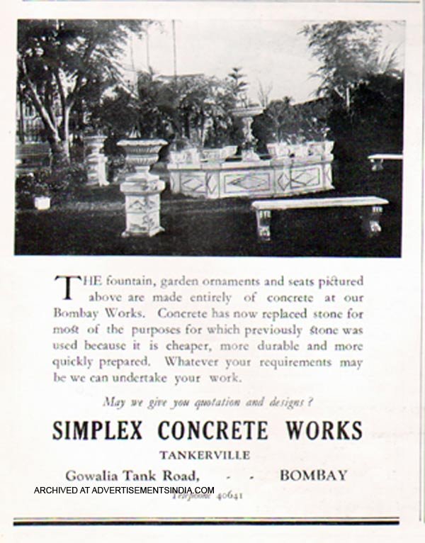 An advertisement from 1938 (shown below) draws attention to concrete as a cheaper, more durable construction material than stone, one of its greatest advantages being that concrete could be “quickly prepared”. There is a clear shift away from stone as a building material in this period, as seen in the modern Art Deco precincts that emerged in various parts of the city, starting with the row of apartment buildings near Oval Maidan in the 1930s. The abundance of advertisements for concrete and cement at the time corroborates the same.