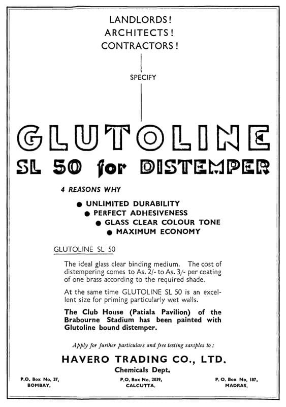 These products were advertised as being convenient and prompt in application, durable and colourful. The company even went so far as creating an “anti-fungus” wall paint that can be “mixed with sea-water without ill-effects!” – perfect for use in a coastal city like Bombay.