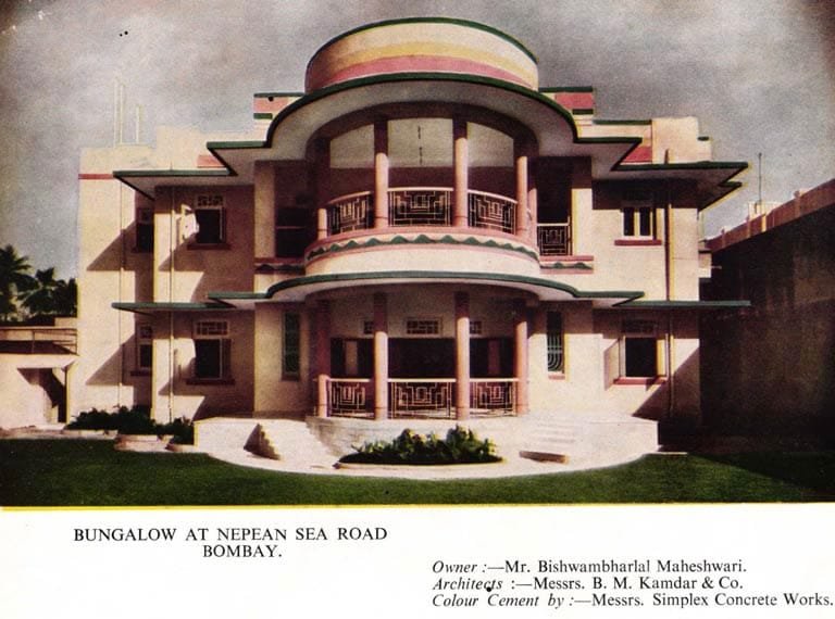 Other contractors, construction companies and concrete manufacturers also followed suit by endorsing their versions of coloured cement. Simplex Concrete Works, for instance, used elements of coloured cement for constructing several renowned Deco buildings, such as Belvedere Court in Oval Maidan, Shah Baug in Cumbala Hill, and Bahadoor Manzil in Fort. The ease of construction and durability of products associated with coloured concrete became the unique selling point for the company.
