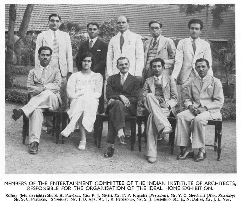 Mentions of her activities as a member of the IIA in their journals serve as a source of documentation of her time there. One of the most significant contributions of Mistri as part of the IIA was being a member of the ‘Entertainment Committee’ which organized the pivotal 1937 Ideal Home Exhibition held in Bombay. Termed as a ‘one of a kind exhibition’ in India back then, it has been recognized over the years as an influential event in the discourse of modern Indian architectural history. It heralded a new era that contributed to the rise of apartment living and showcased to the public the premise of an ‘ideal home’ and the various amenities offered by modernity. Pictured below is Perin Mistri, seated with the rest of the members of the organising committee which consisted of prominent (male) architects of India at that time. The committee included luminaries like Yahya C. Merchant, several presidents of the IIA like the thrice-elected P. P. Kapadia, J. B. Aga, and S. H. Parelkar among others who contributed immensely to the growing landscape of modern architecture via numerous building designs, articles on town planning and civic design, advocacy of architectural education and public awareness through talks and exhibitions, participation in municipal committees etc.