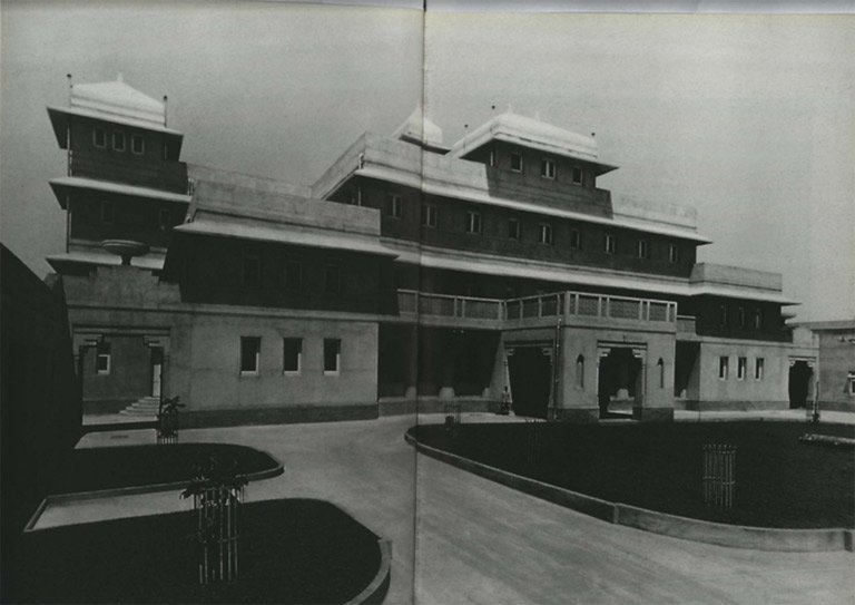 The site measured 1.65 acres, and the building was a mixed-use residential complex with shops, restaurants, offices on the ground floor and residences above. Spacious apartment-style residences with five storeys were planned in seven blocks. The complex had a tennis court inside, and 24 garages on the ground floor on the west side, many of which were used for Raja Dhanrajgir’s fleet of luxury cars, including a Daimler limousine and a rare Simson Supra. [26]