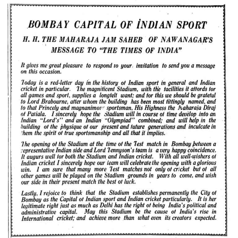 It was not surprising, therefore, that several donations were made by the Maharajas and the business entrepreneurs of Bombay, for the construction of the stadium. This new development prompted members of the princely states to visit Bombay even more frequently.