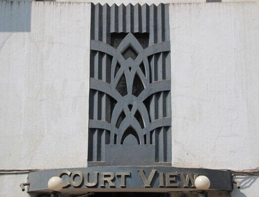 The lettering at Empress Court, Oval Maidan installed during MHADA repairs in the 1990s. This replaced the original 1936 signage. Source: Art Deco Mumbai