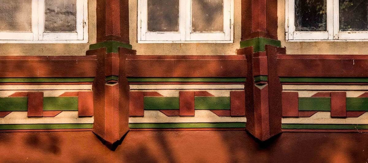 Geometric or tropical themed motifs are often seen as bas-relief and friezes on Deco buildings.
