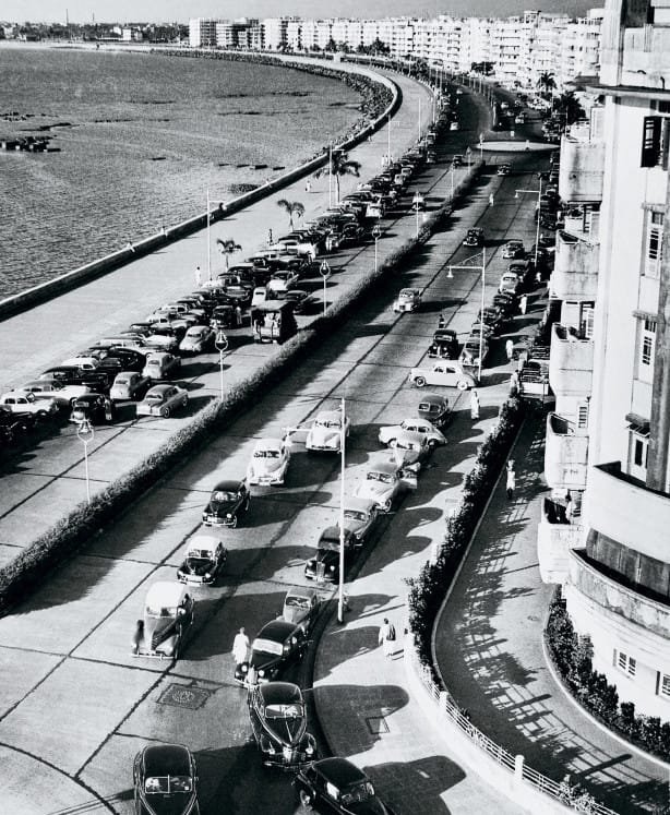 The way we were: Marine Drive in the 1940’s or 50’s taken by the celebrated Bombay photographer A.L Syed. A cricket match is probably the reason for the unusually large number of cars.