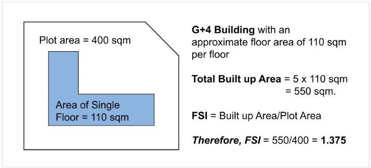 Also known as Floor Area Ratio, FSI is the ratio of the total area of the building on all floors and the gross plot area. The built-up area (BUA) is calculated with simple geometric methods, and deductions are made for certain spaces stipulated in local regulations.[11] The DP of 1967 further facilitated the practice of adding floors to existing buildings. Every locality in Bombay was designated a specific permissible FSI. Building owners could conveniently add extra floors above the building, provided the permissible FSI was higher than the consumed FSI of the building.