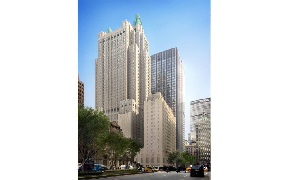The planned exterior of the Waldorf Astoria, located at 301 Park Ave. in Manhattan, is shown in this rendering. The building was designated an official New York City landmark in 1993.(Credit: Skidmore, Owings & Merrill LLP / Rendering by Methanoia Inc.)